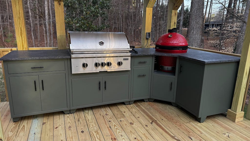 The centerpiece and workhorse of your new outdoor kitchen, this cabinet allows you to build in a wide array of grills and griddles from all the top brands. The cabinet openings are generically sized, and then we customize the front trim to your appliance and countertop plan.