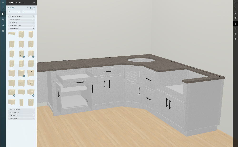 Our 3D planning software empowers you to plan and configure your space with our entire catalog. With intuitive tools and starter templates, designing your dream cabinetry has never been easier.