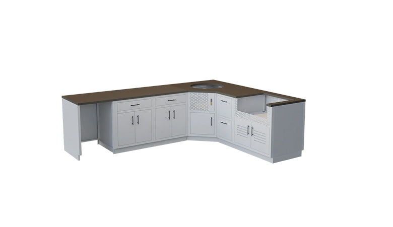 A simple outdoor kitchen island, easily configured with all the basics for an everyday versatility.