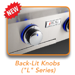 The new “L” series grills feature an electronic push button ignition system that does not require batteries. It also includes interior halogen lights (controlled by a push button located on the right side of the unit) ideal for night grilling. Requires 120 Volt AC power.