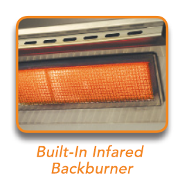 Backburner with high performance rotisserie kit (not available on -00SP models).