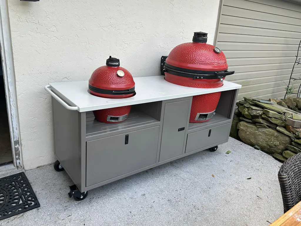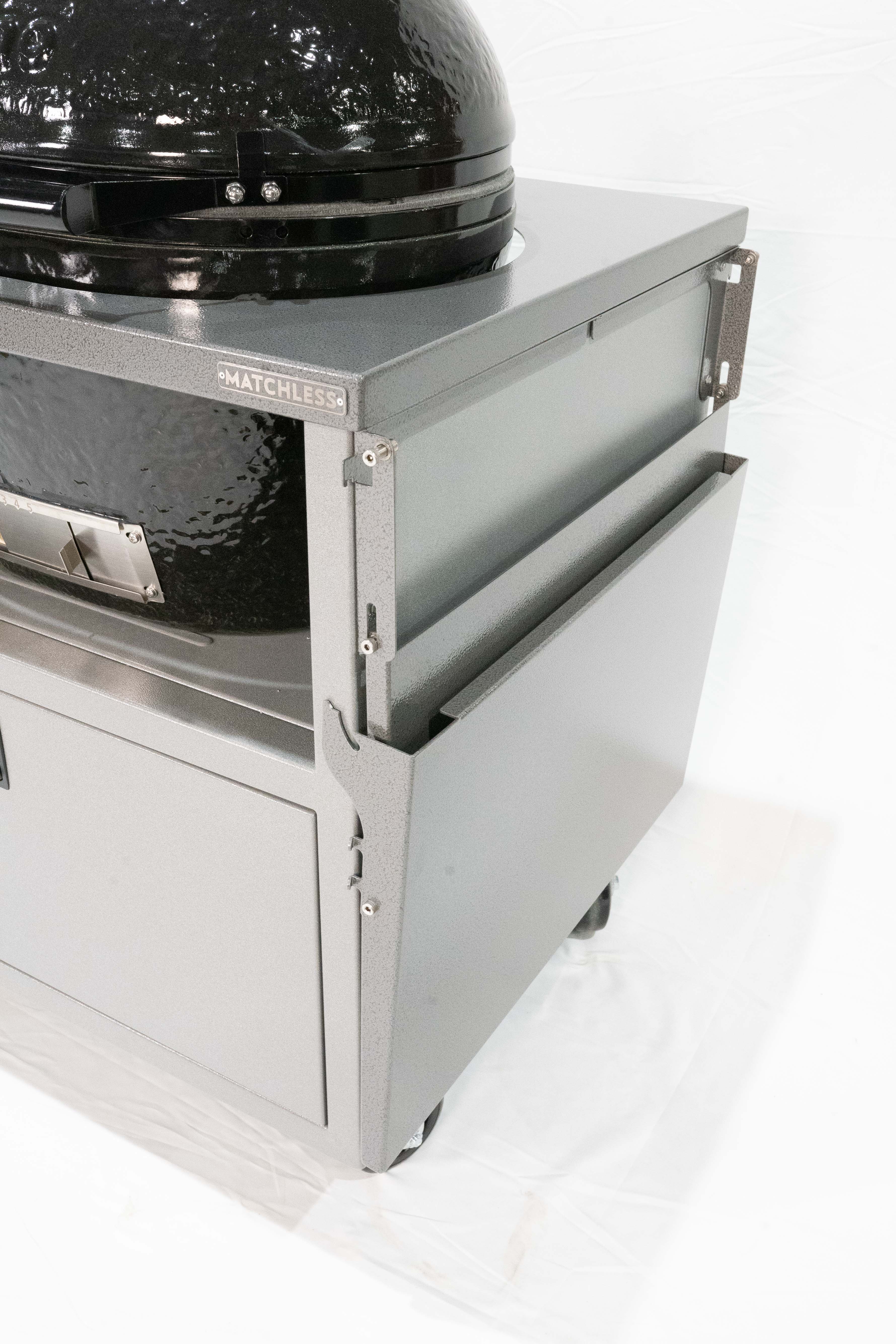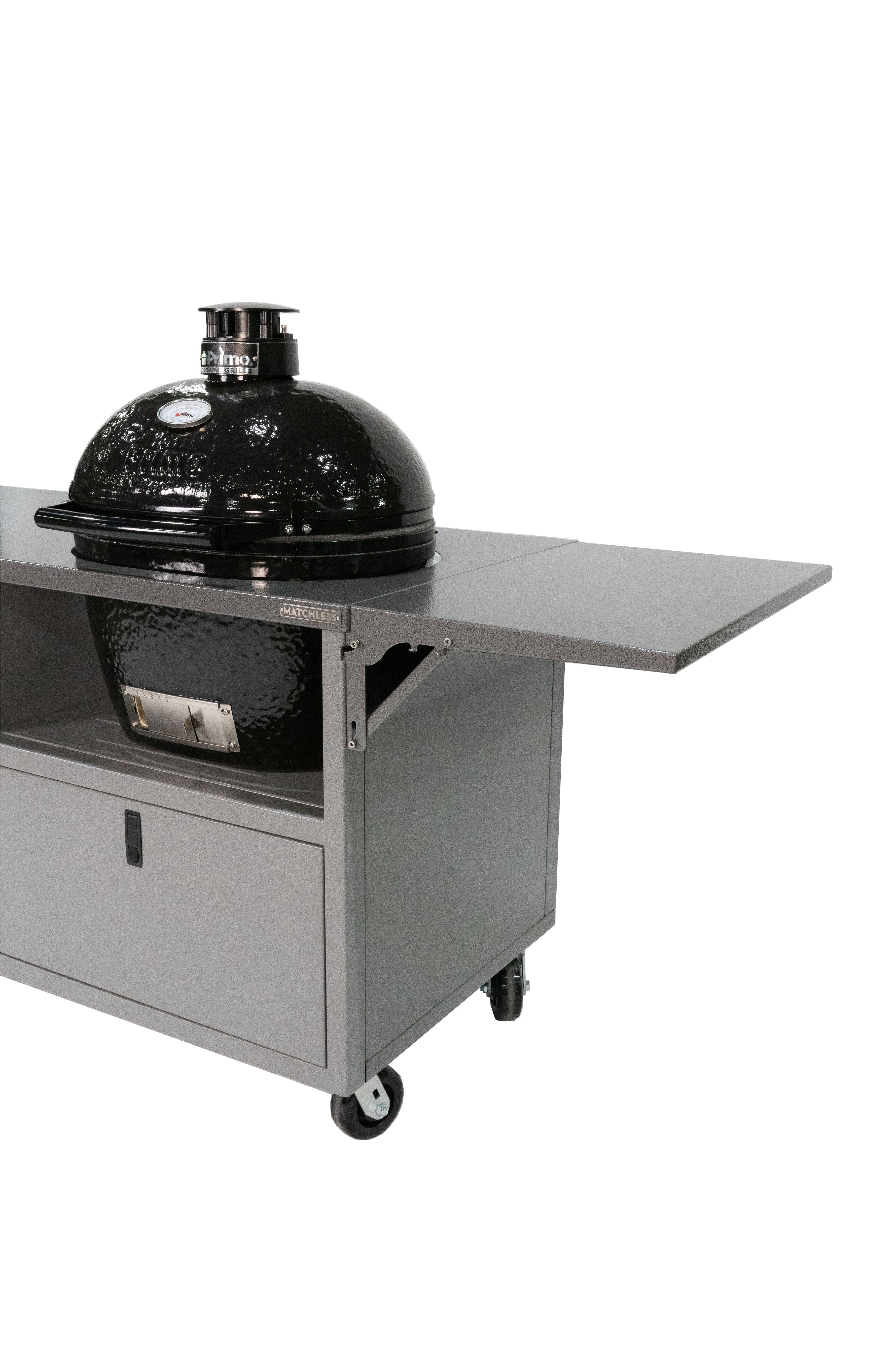 The only thing better than one ceramic grill is two! Our Duo Cart can handle any two ceramic grills with room to spare for charcoal, tools, and more. Grills not included.