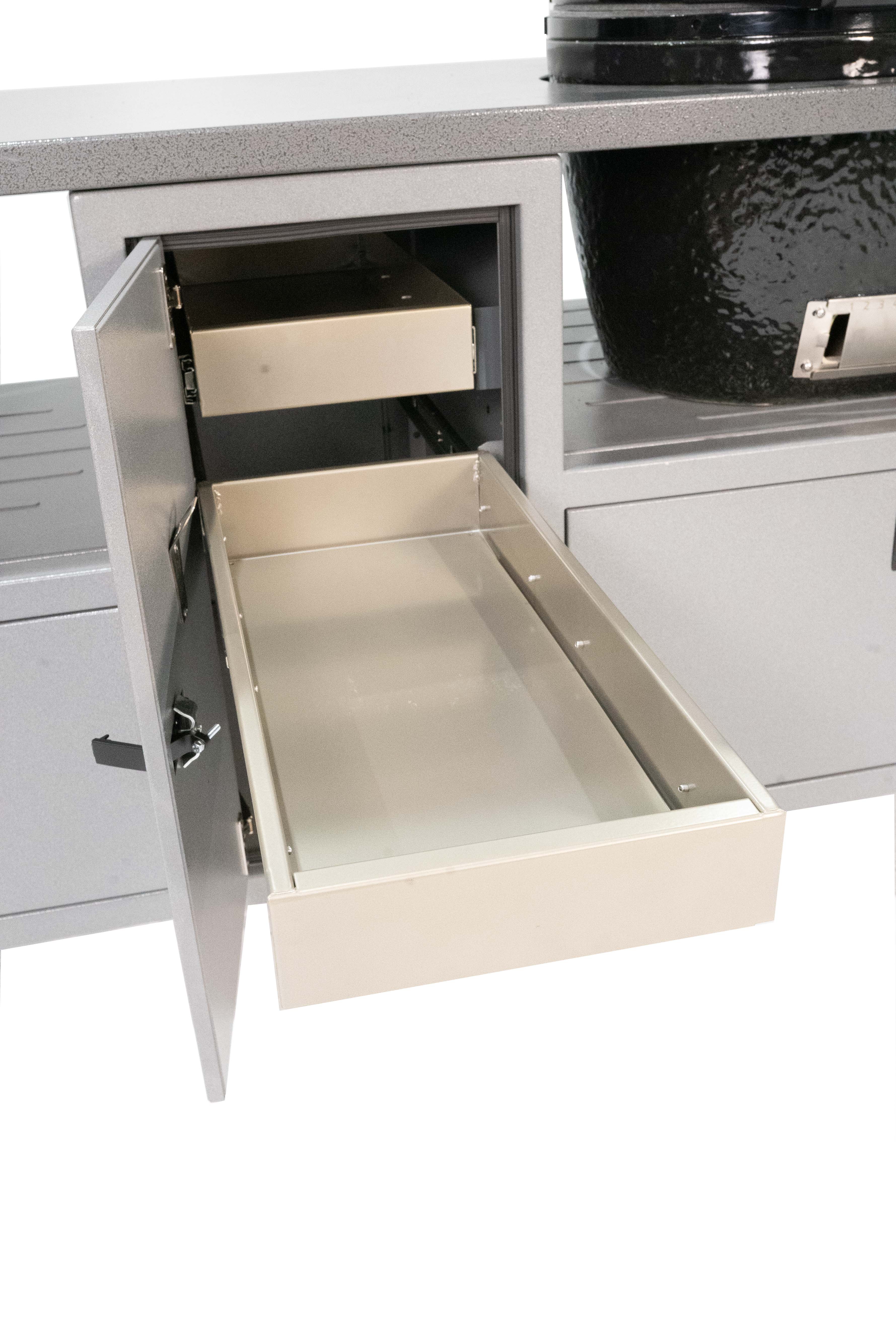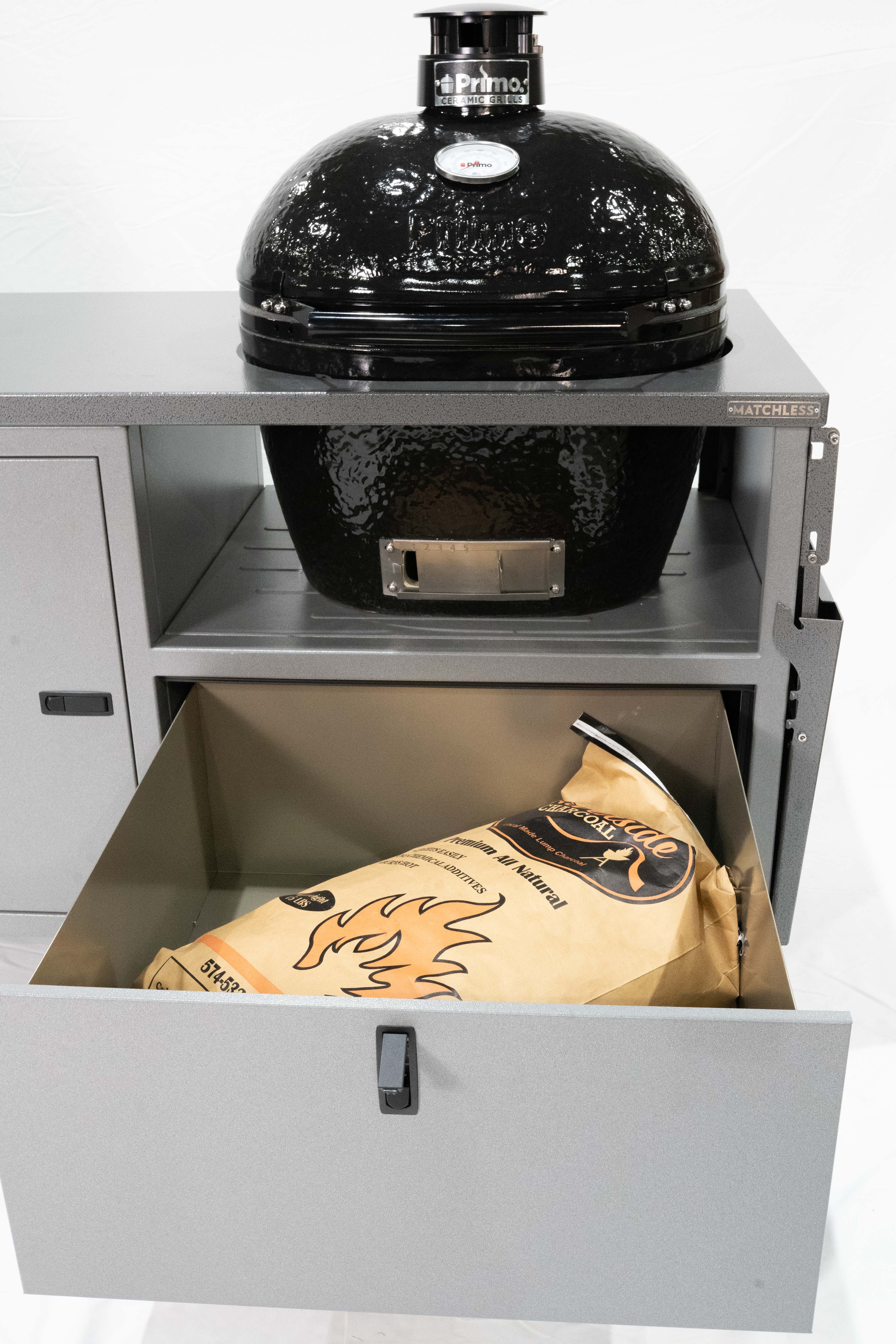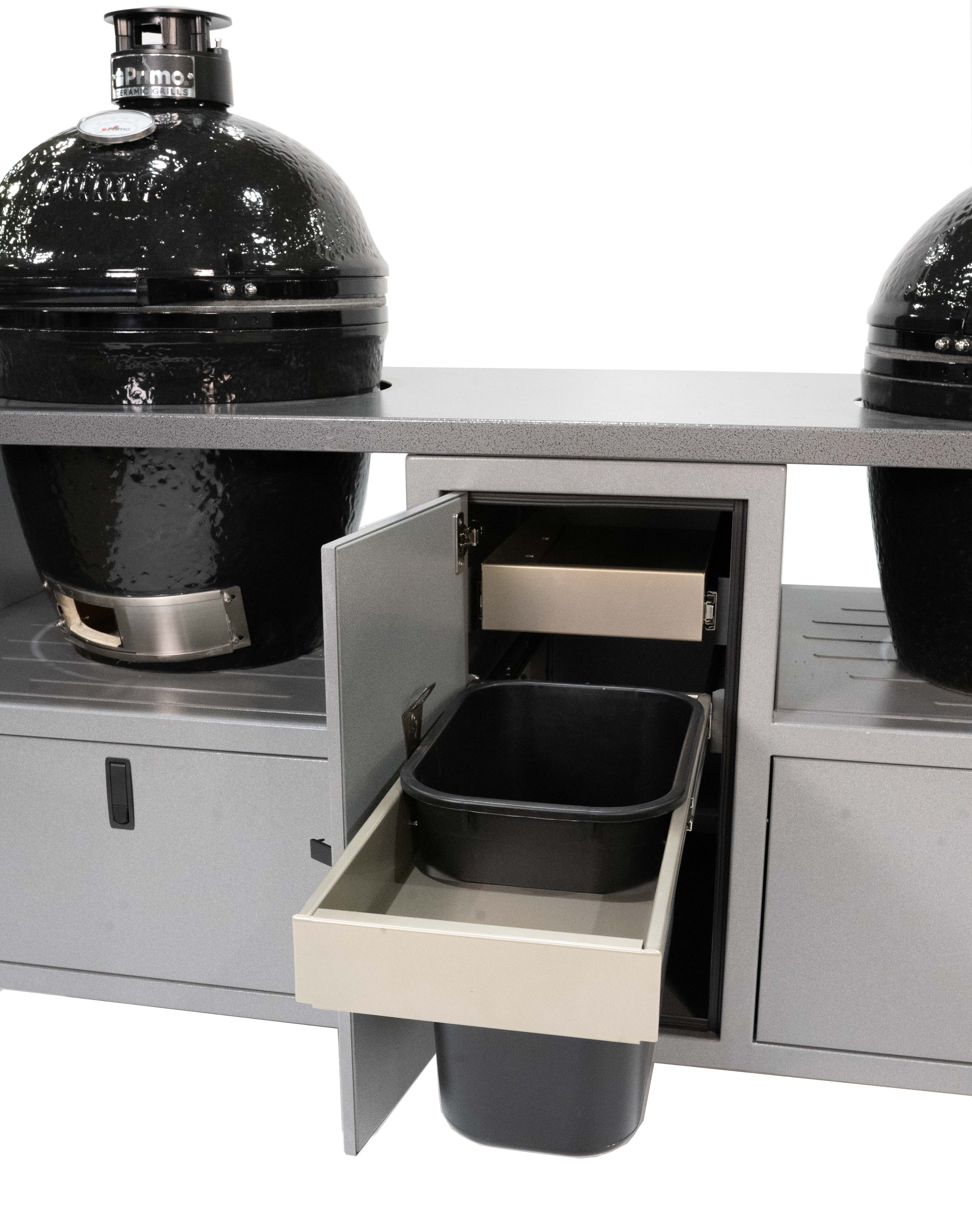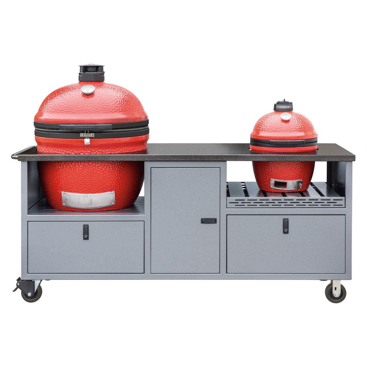 The only thing better than one ceramic grill is two! Our Duo Cart can handle any two ceramic grills with room to spare for charcoal, tools, and more. Grills not included.