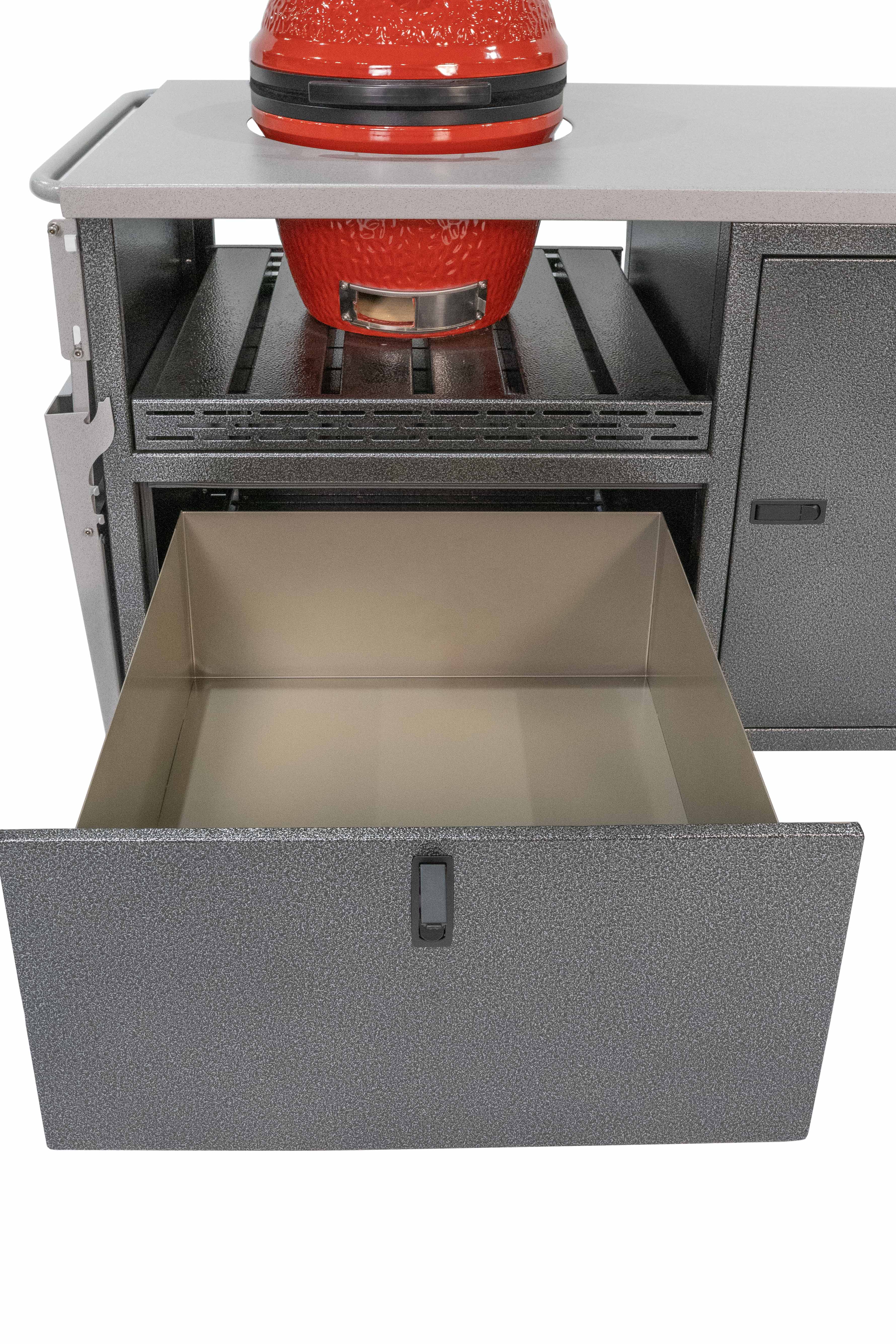 Built for smaller decks and backyard spaces, the Flare Cart is made for maximum storage in a small package. This cart is weather resistant and made to the same high quality of all our cabinets. Grills not included.