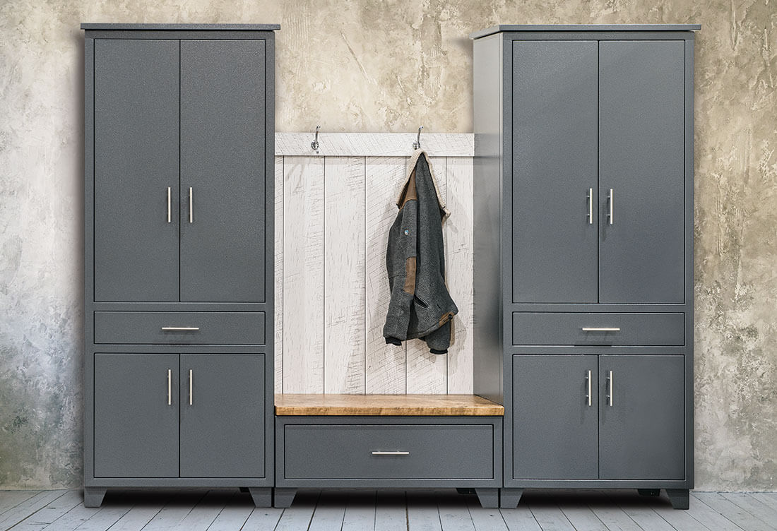 Four Door Coat Closet w/Drawer and Overhang Top - 18.75" Depth