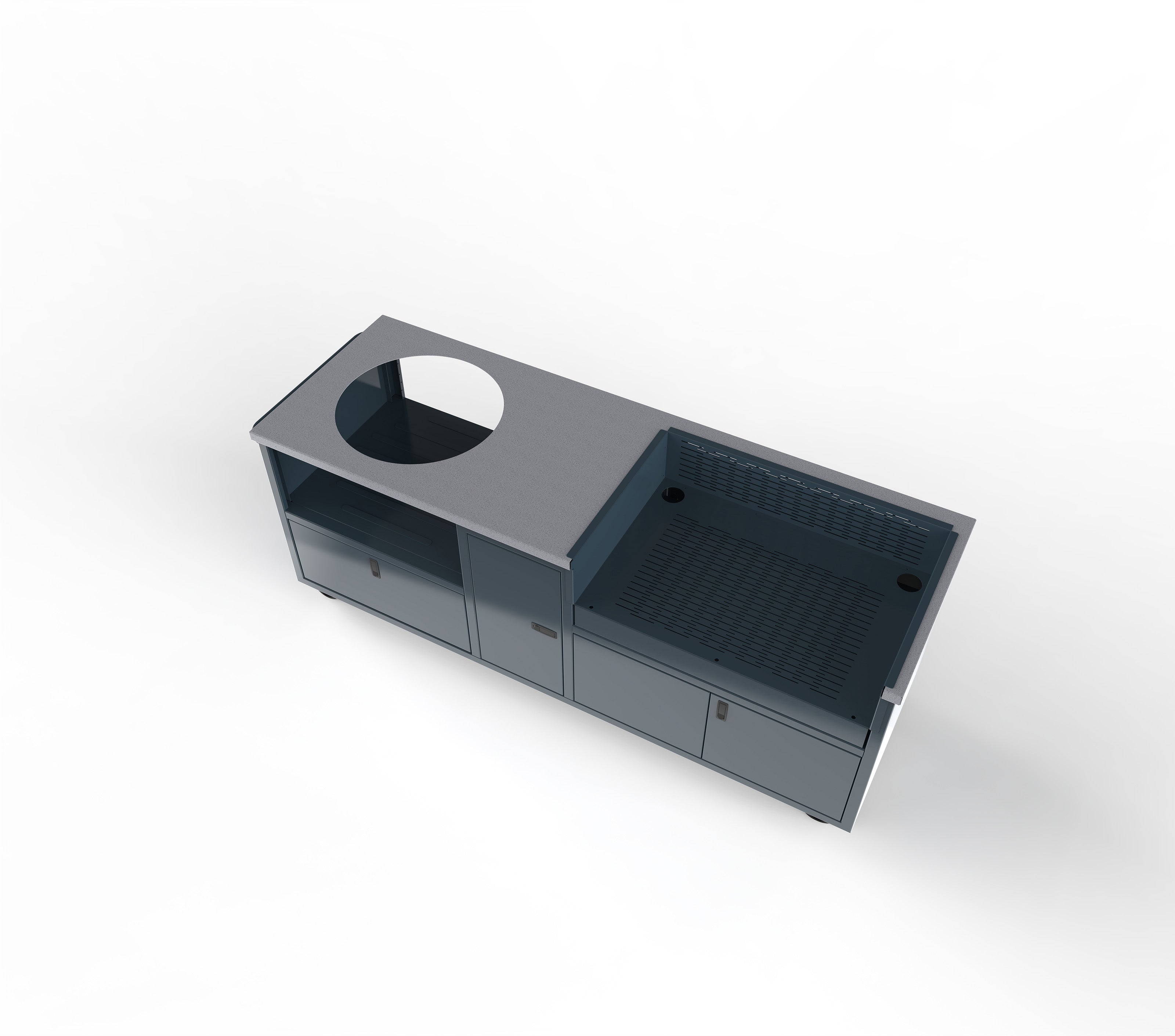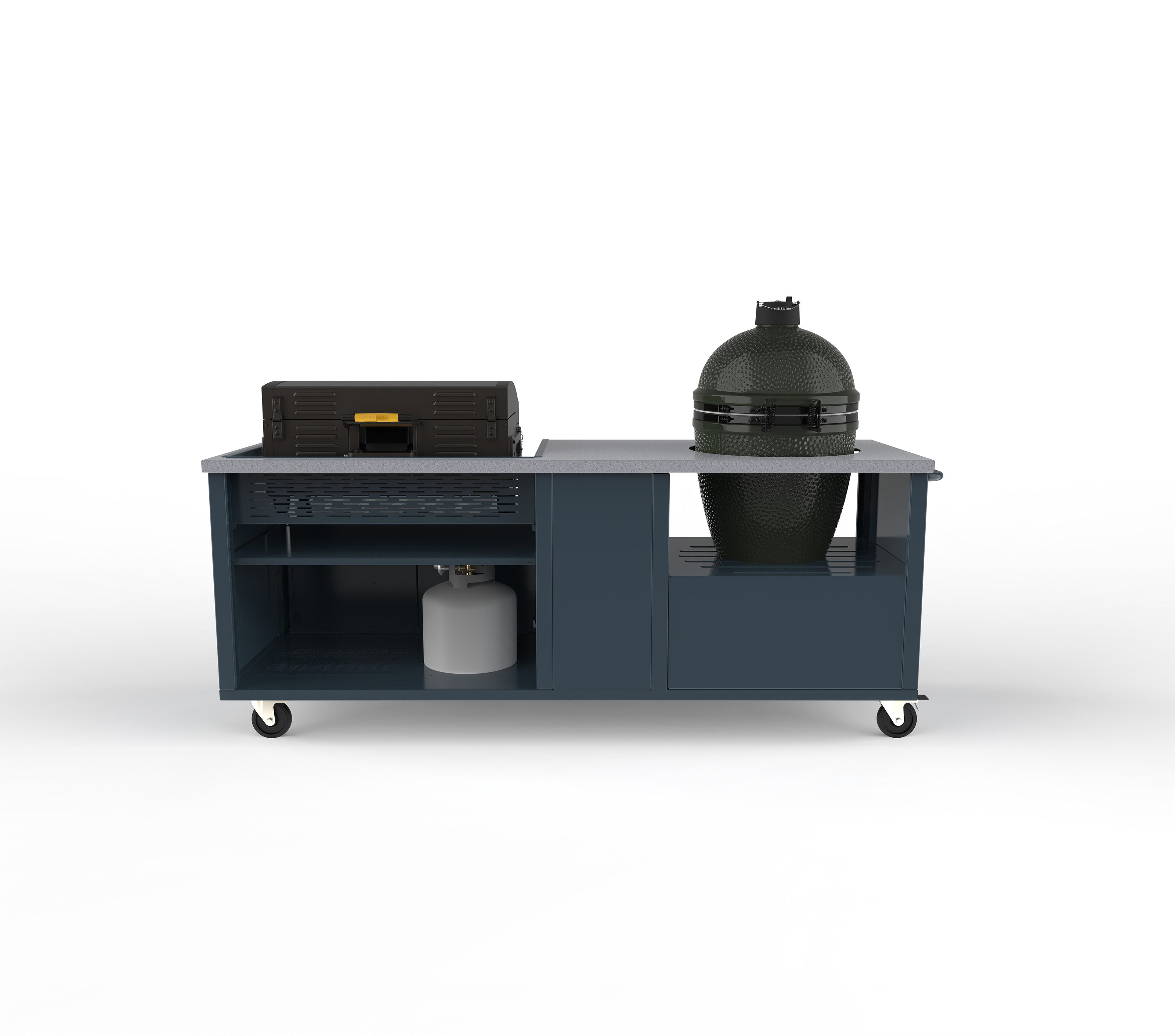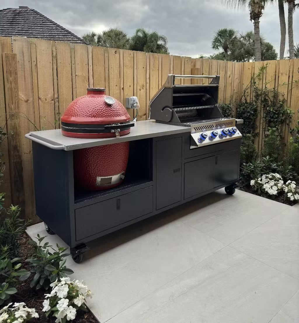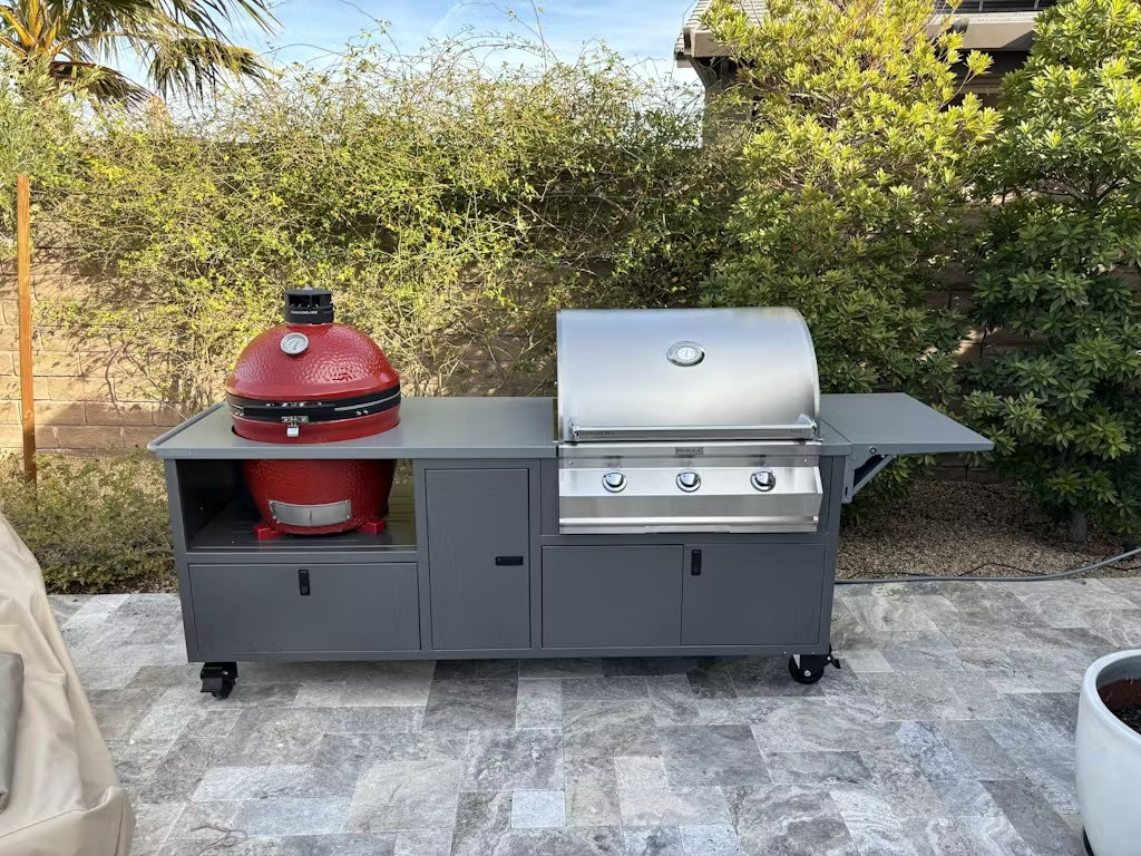 Gas or Charcoal, we have you covered with the Fusion Grill Cart. Grills not included.