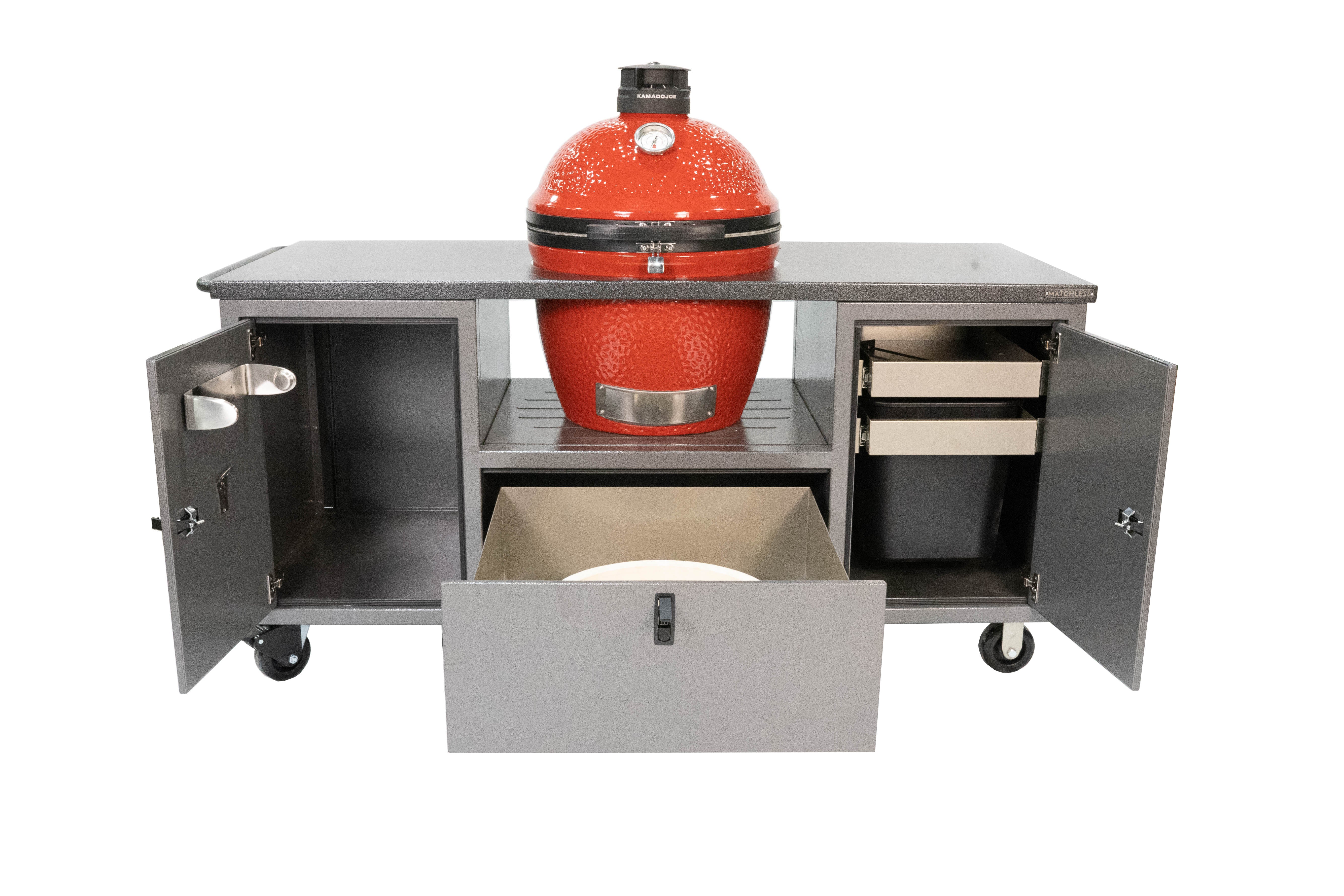 Our best selling grill cart! The Inferno can handle all of your kamado cooking needs, with ample storage and great looks.