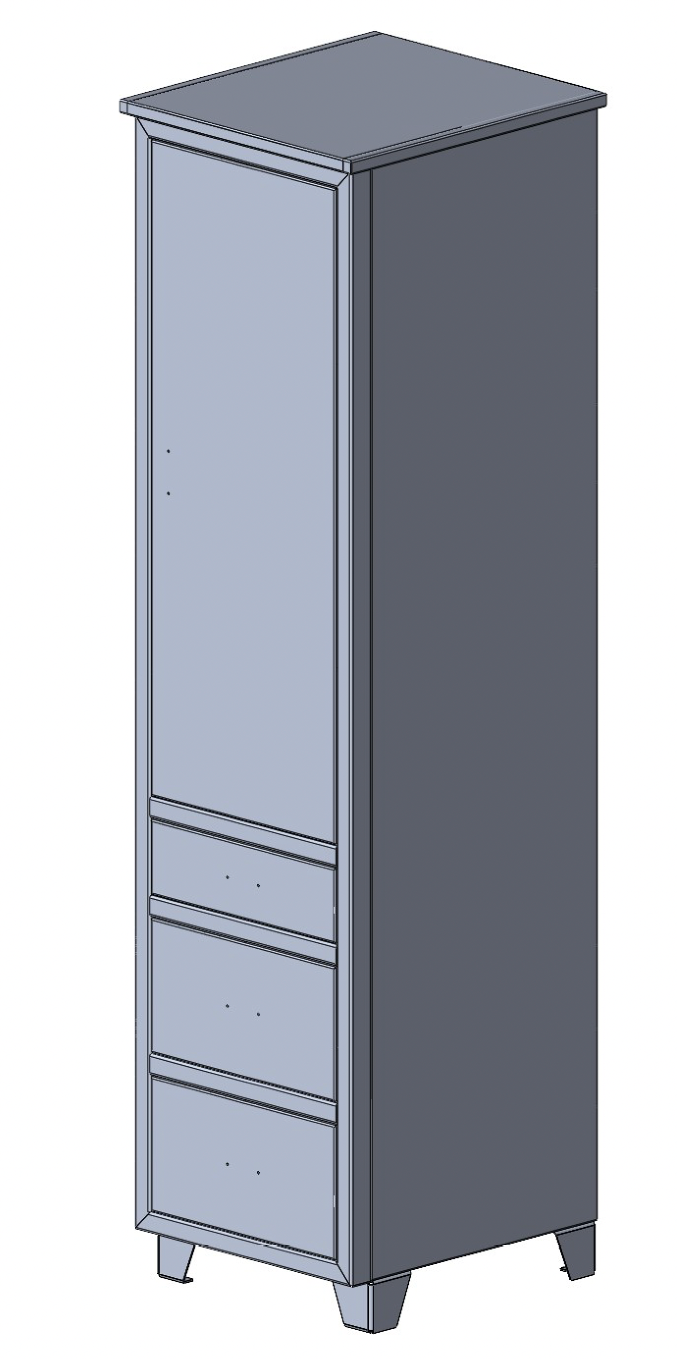 Three Drawer, One Door Pantry w/ Overhang Top - 24.75" Depth