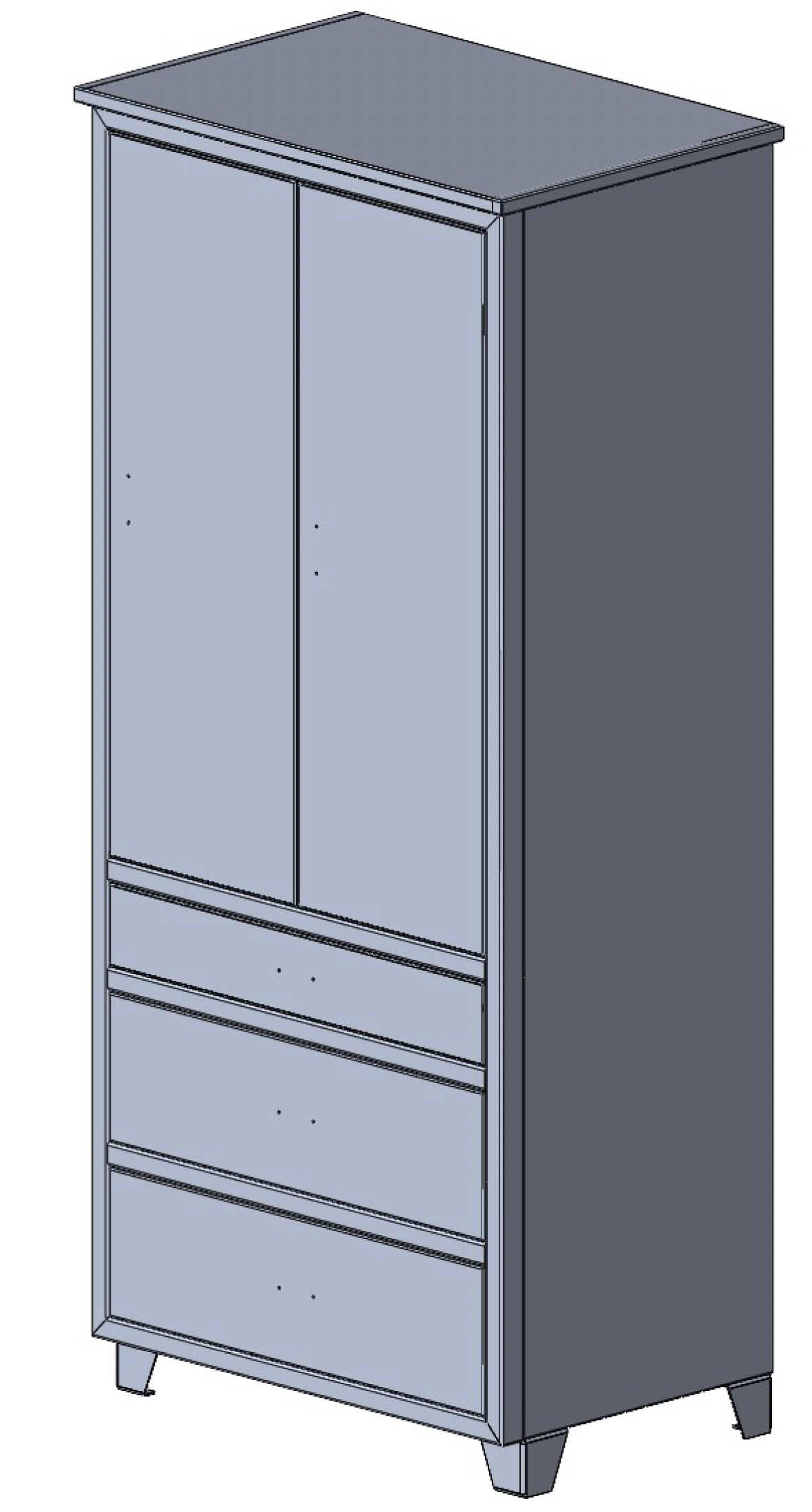 Three Drawer, Two Door Pantry w/ Overhang Top - 26.75" Depth